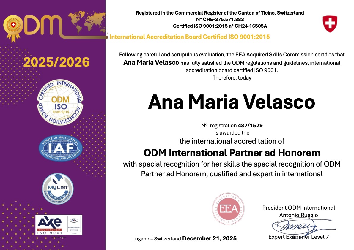 - Miembro honorario ODM – Orden Internacional de Terapeutas de Masaje (Lugano, Suiza) desde 2023