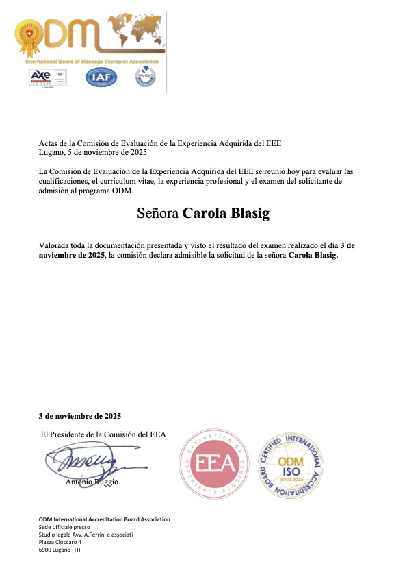 La Commissione di Valutazione delle Esperienze Acquisite (EEA) si congratula con la collega Carola Blasig 🇦🇷 per aver superato con successo il test di verifica delle competenze acquisite, soddisfacendo pienamente tutte le normative internazionali e le linee guida dell’ODM International Accreditation Board, certificato ISO 9001:2015.