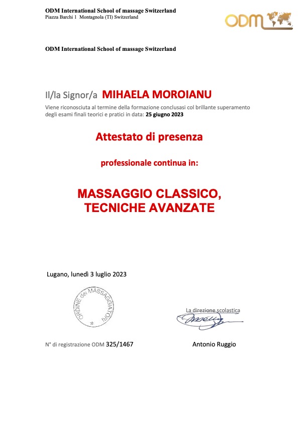 Massoterapista diplomata, e specializzata in: