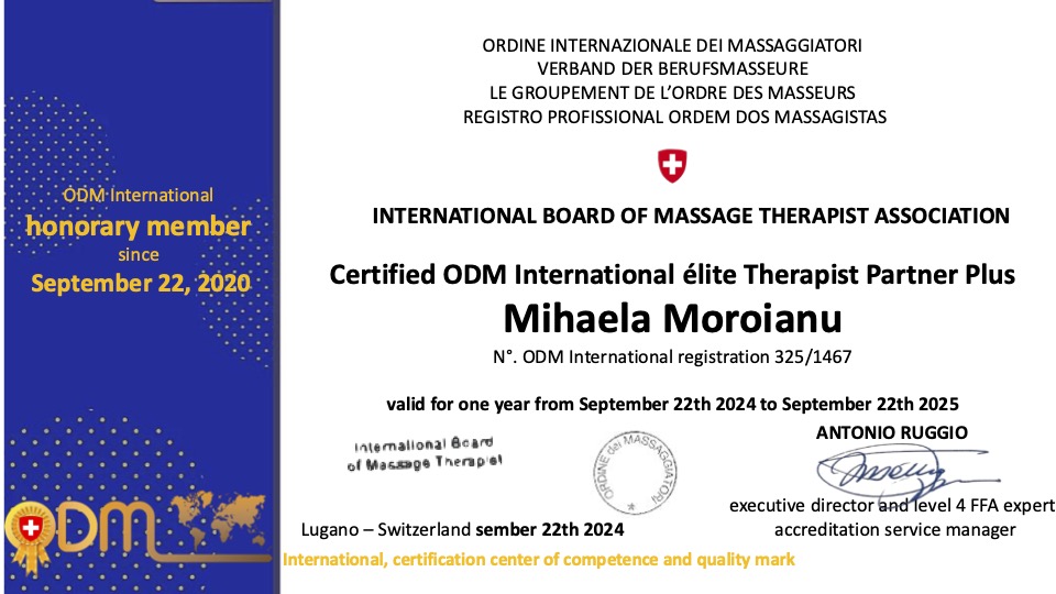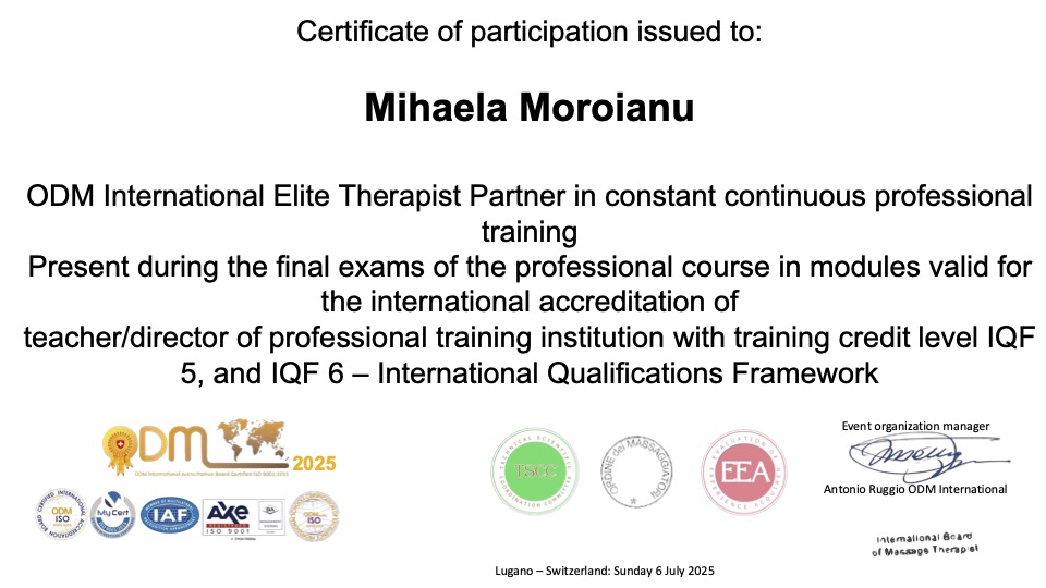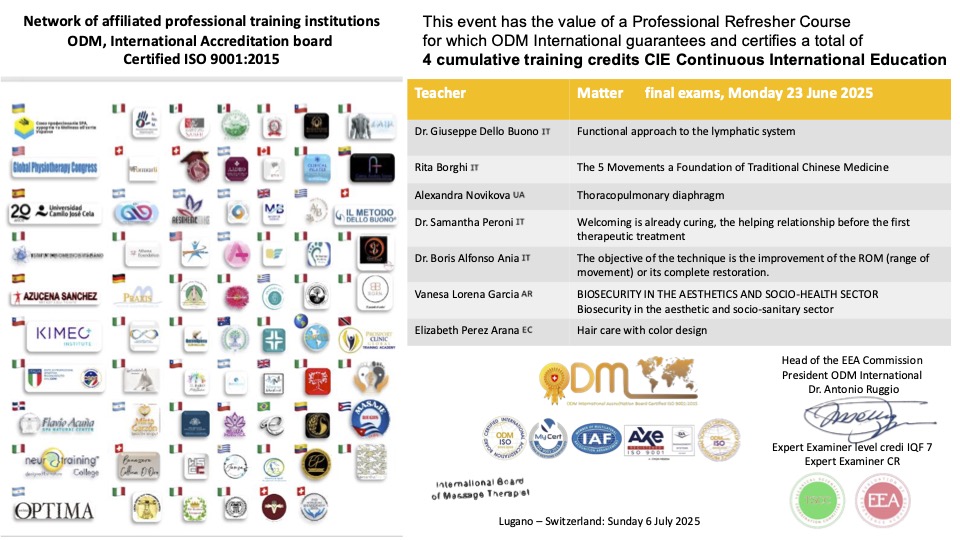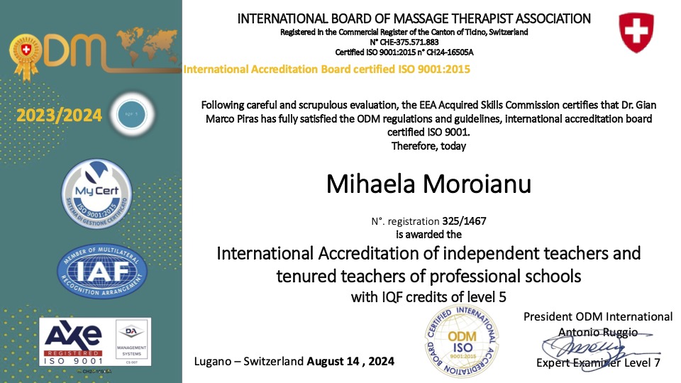 >ODM International Élite Therapist Partner Plus con accreditamento internazionale ODM International Accreditation Board Certificata ISO 9001:2015