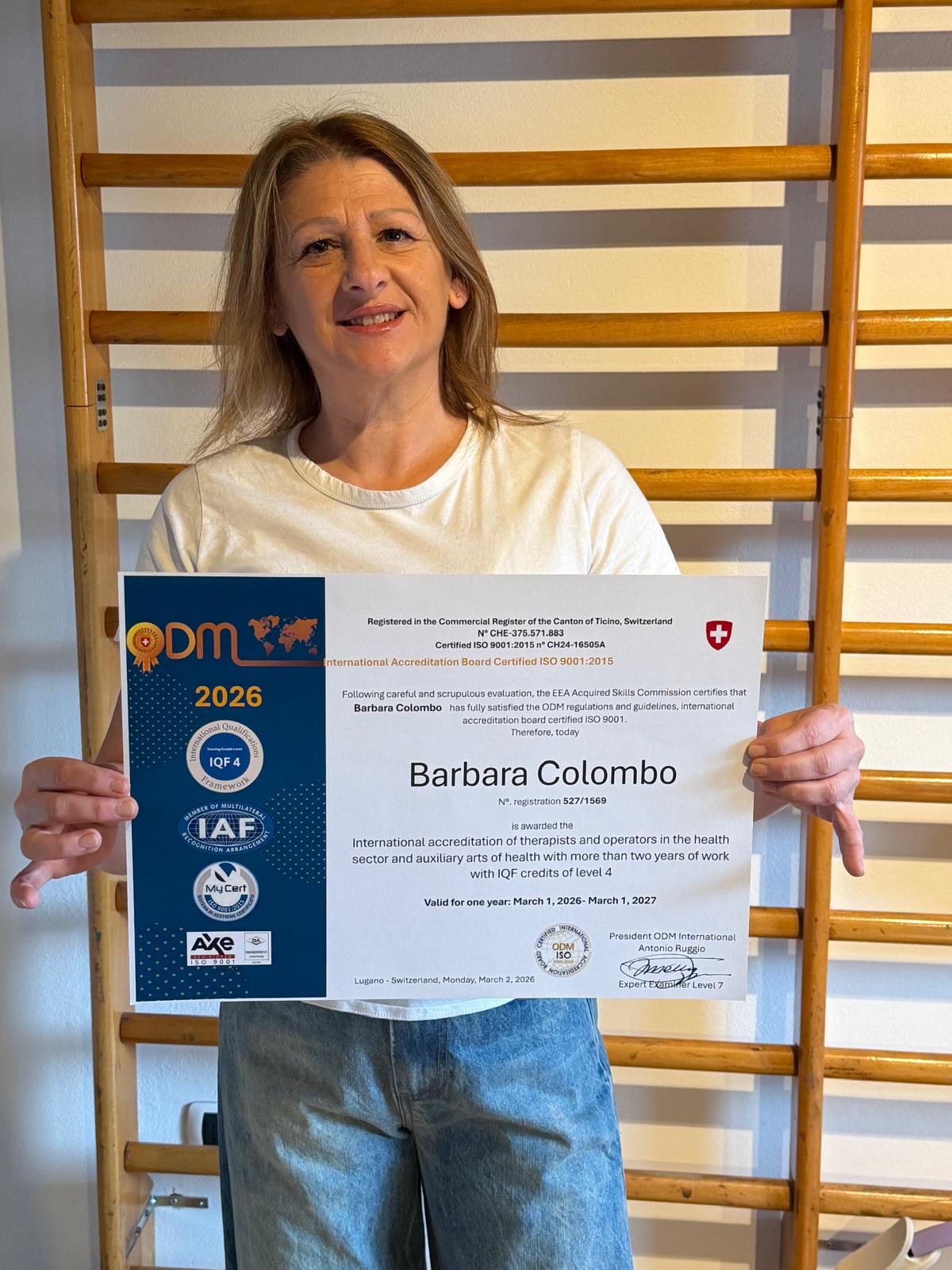 n° reg. ODM 483/1525, Elite Therapist Partner Plus, accreditato livello crediti formativi IQF 2 International Qualification Framework Laurea in scienze motorie Dipl. Massaggio Classico, Dipl. Drenaggio Linfatico Manuale