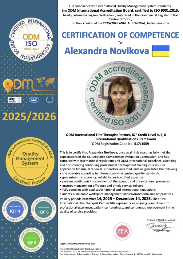 Lo status di ODM International Élite Therapist Partner evidenzia la capacità di operare nel rispetto delle normative settoriali anche in contesti globali.