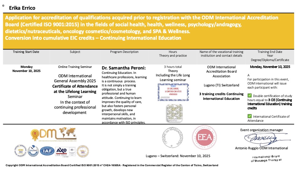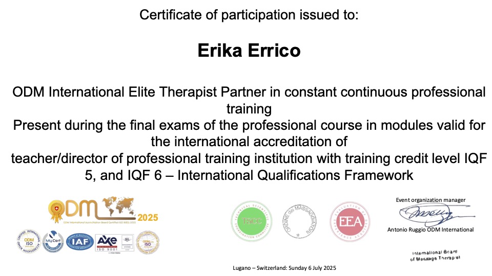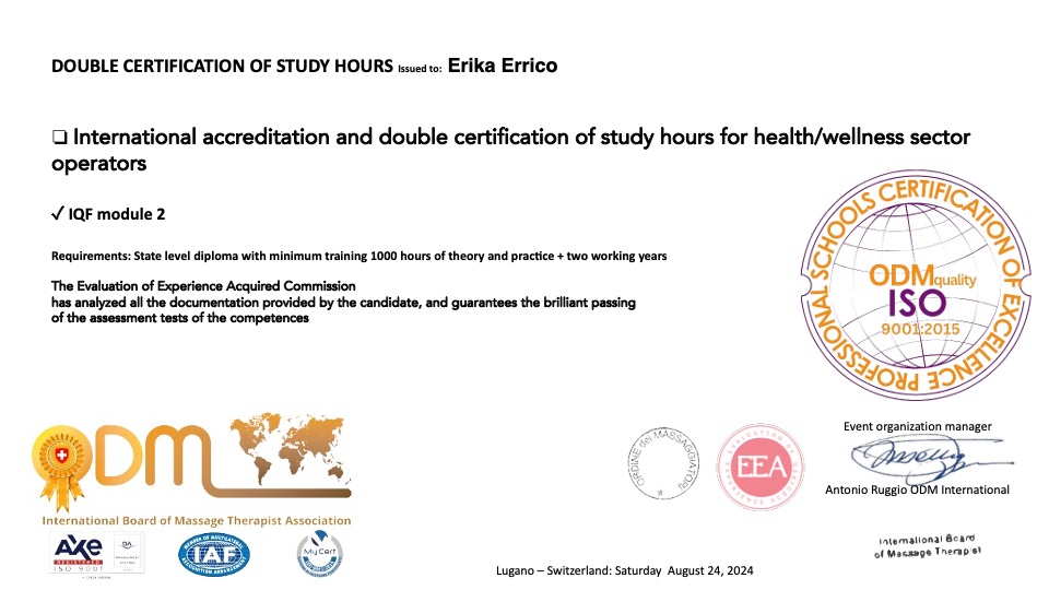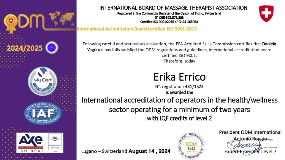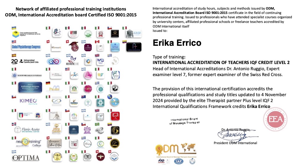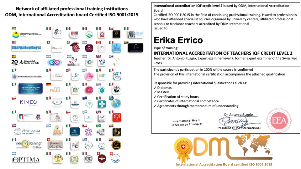 ODM International élite Therapist Partner Plus & Blogger, livello crediti formativi IQF 2 International Qualifications Framework