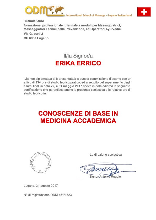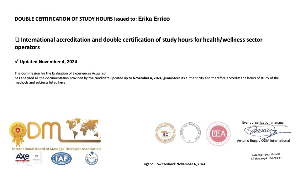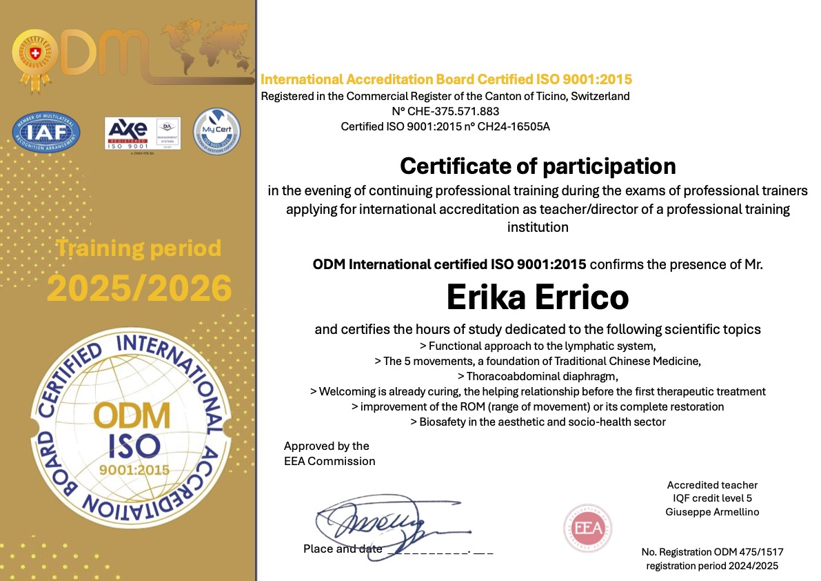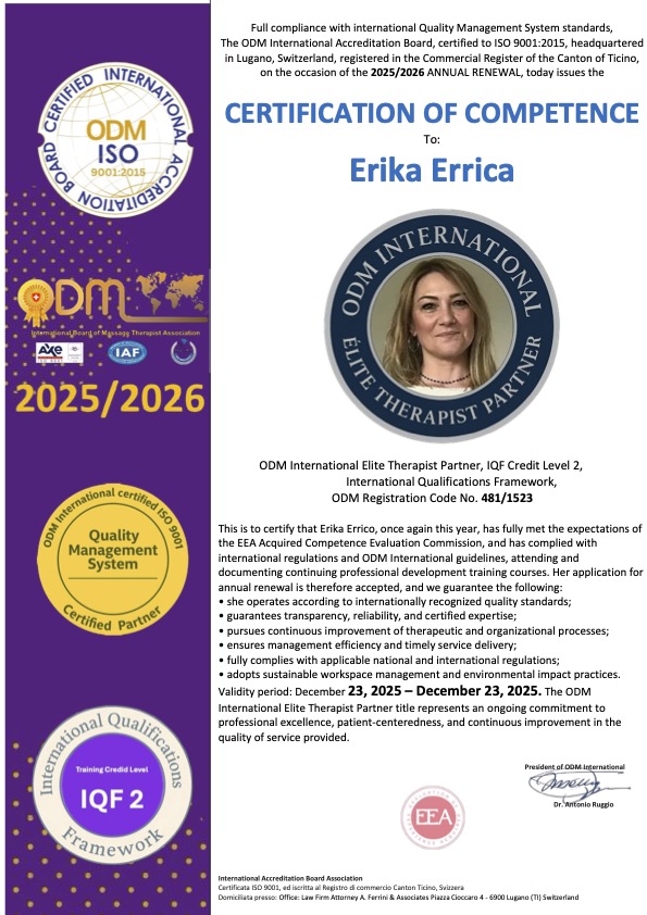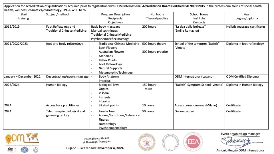 ODM International élite Therapist Partner Plus & Blogger, livello crediti formativi IQF 2 International Qualifications Framework