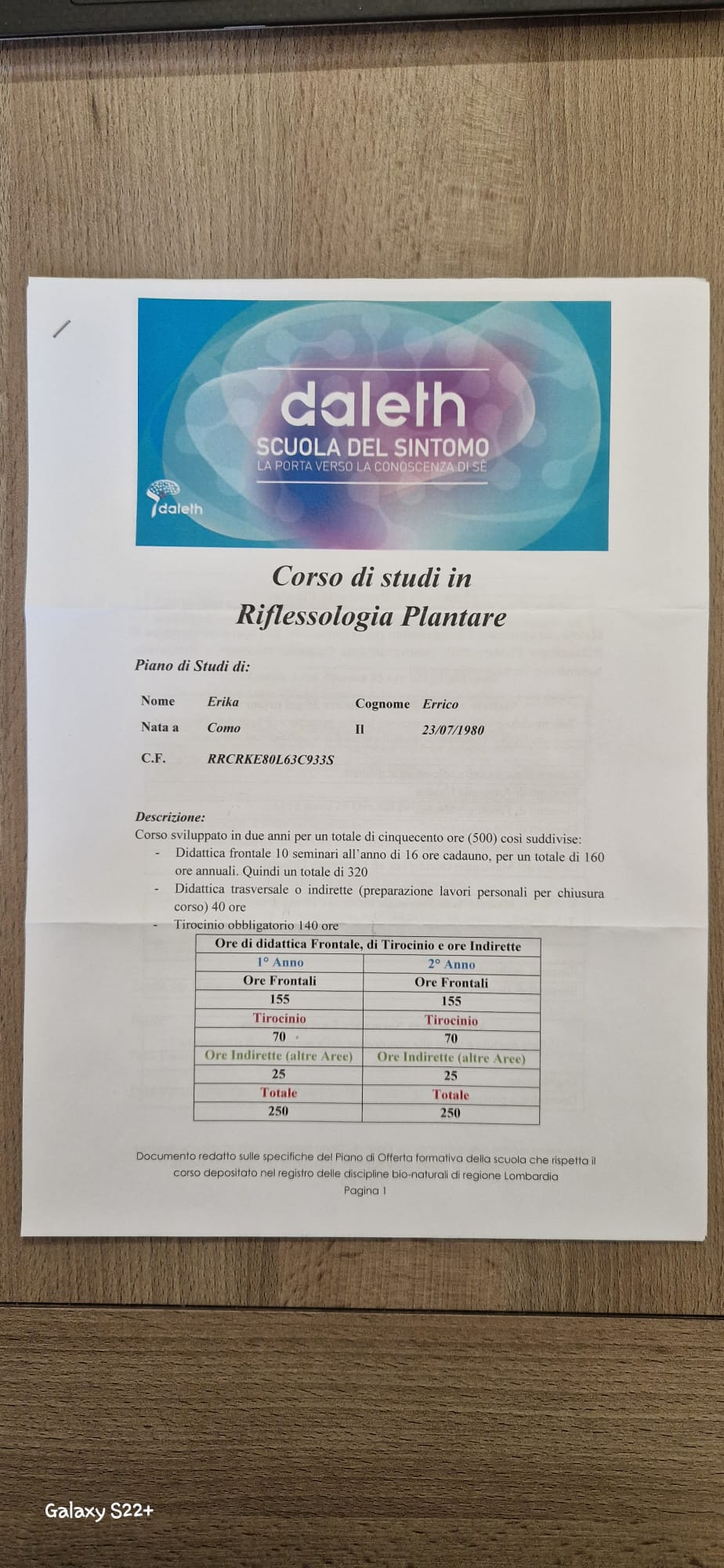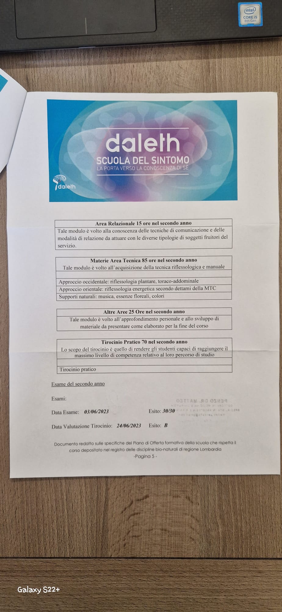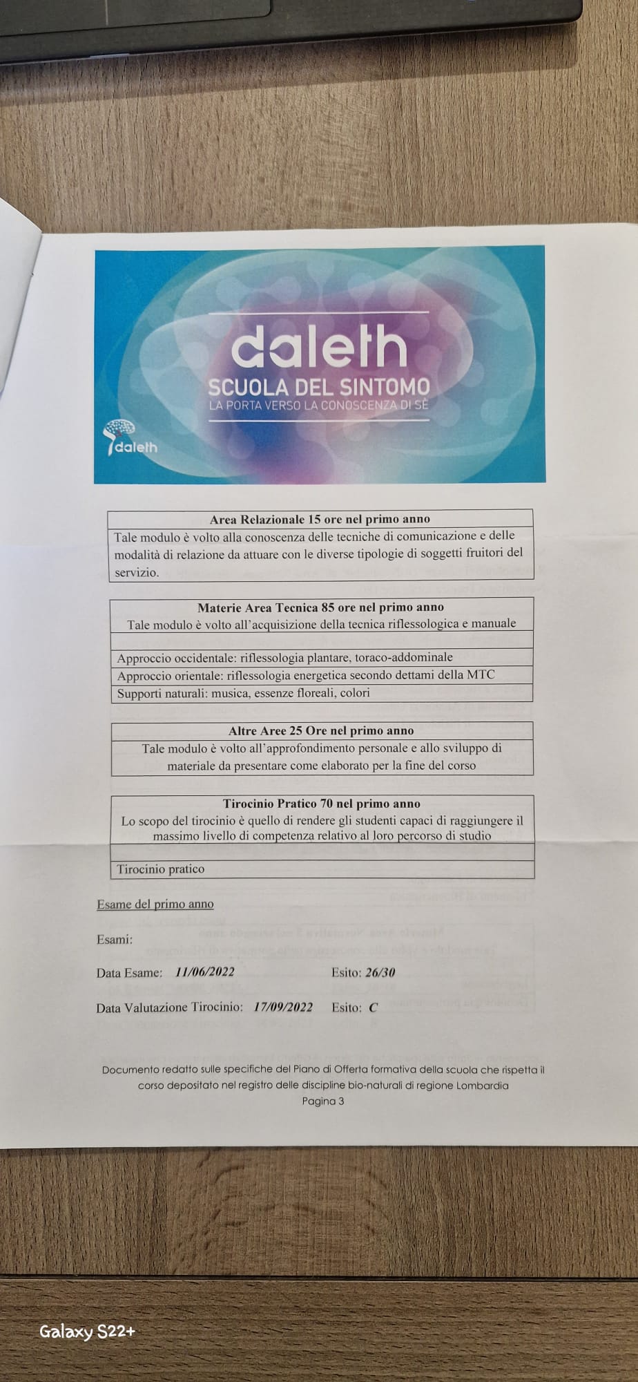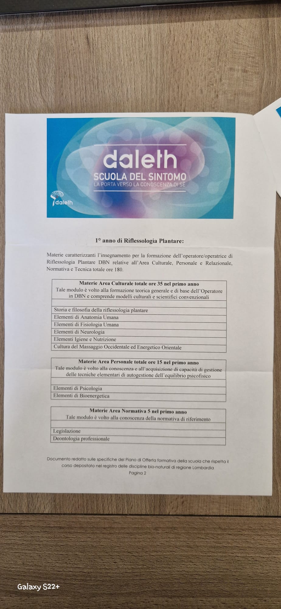 Ho scelto la scuola “Daleth, Scuola del Sintomo” legata alla medicina tradizionale cinese: anatomia, lettura del piede, biotipi, chakra, meridiani, fiori di Bach e australiani, e altro ancora.