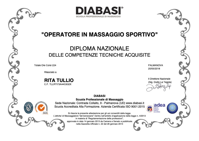- Operatore Massaggio sportivo, Diploma nazionale